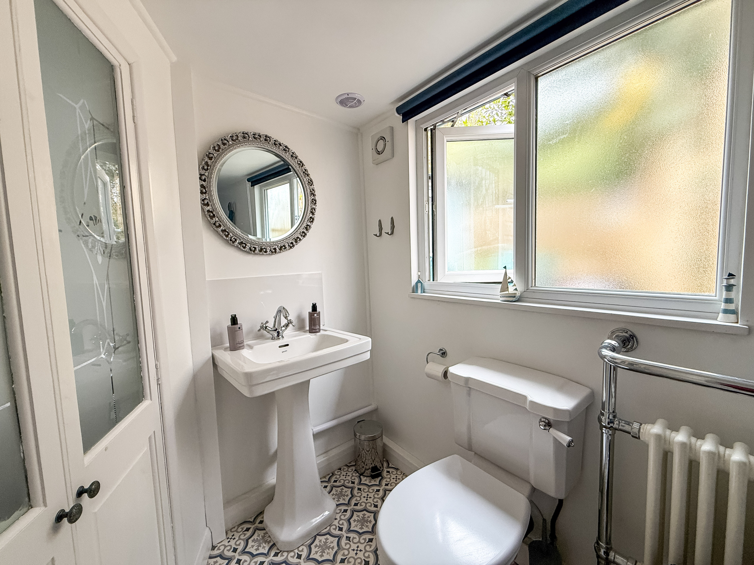 Bathroom - Family bathroom with bath or shower, WC, and wash hand basin.