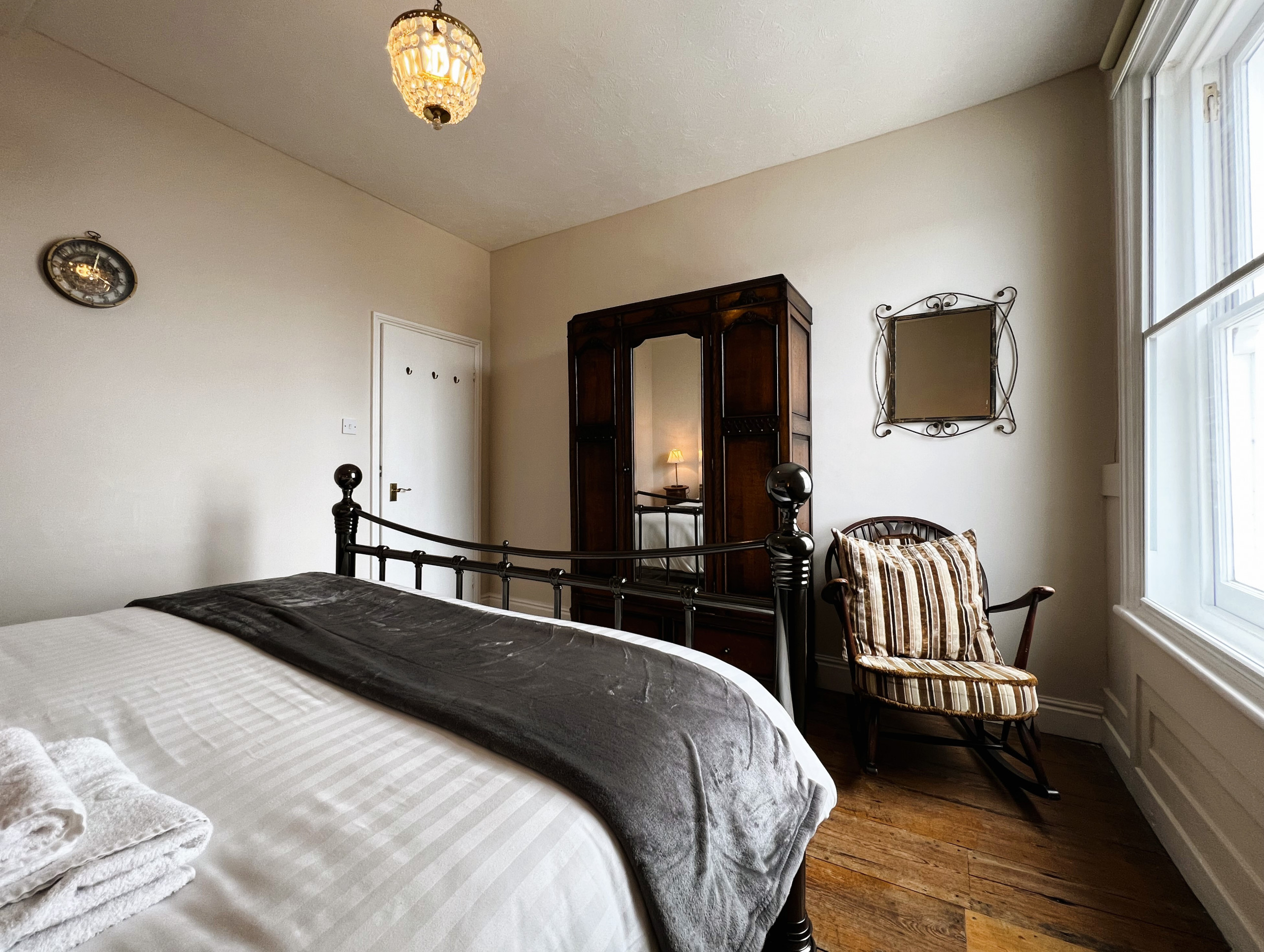 Bedroom 2: twin room 2x 3ft single beds, (can be made into a super king on request) hanging rail, tall chest of drawers, bedside cabinet