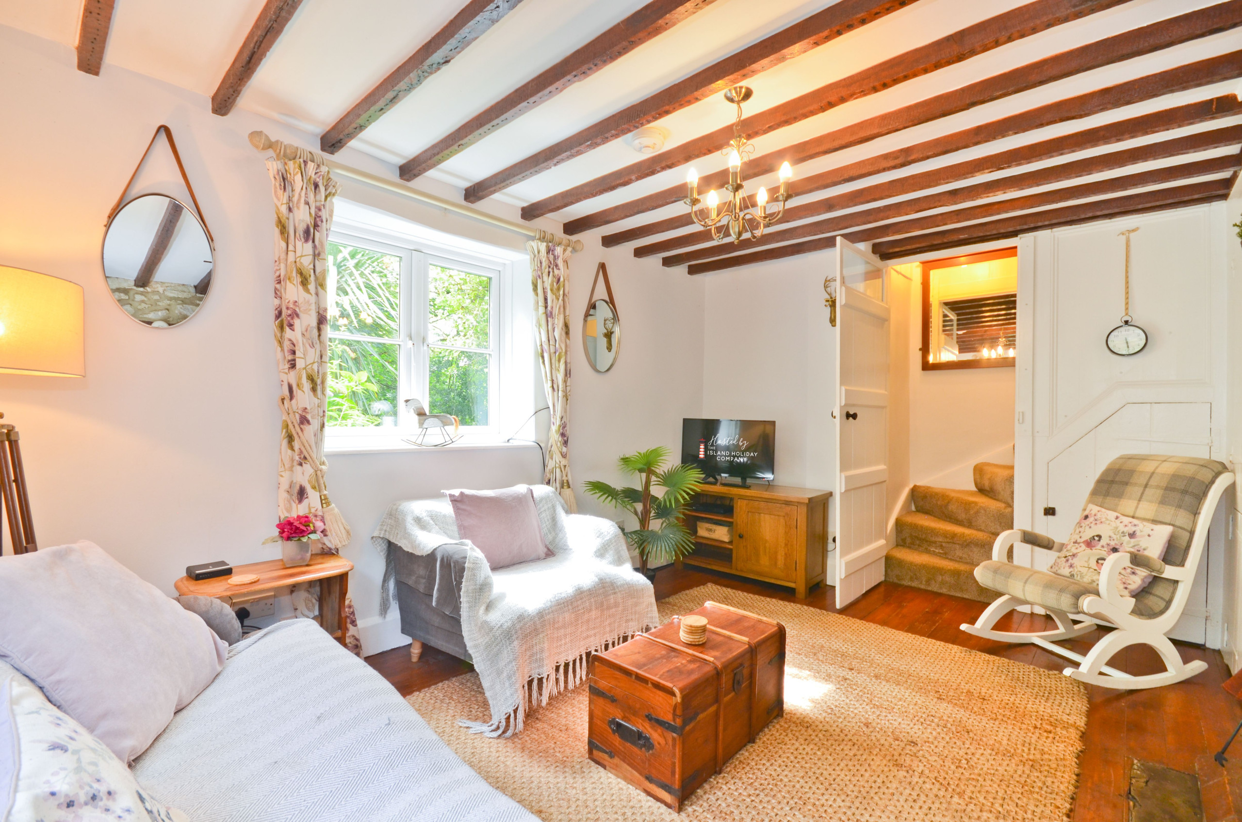 The Island Holiday Company is delighted to present 1 Apse Castle Cottages, a truly enchanting 300-year-old semi-detached stone cottage located on the outskirts of Shanklin, one of the Isle of Wight’s most loved seaside towns. With its storybook exterior, original beams, and peaceful countryside setting, this character-filled Isle of Wight holiday cottage perfectly combines rustic charm with modern comfort — and welcomes up to three dogs to join your stay.