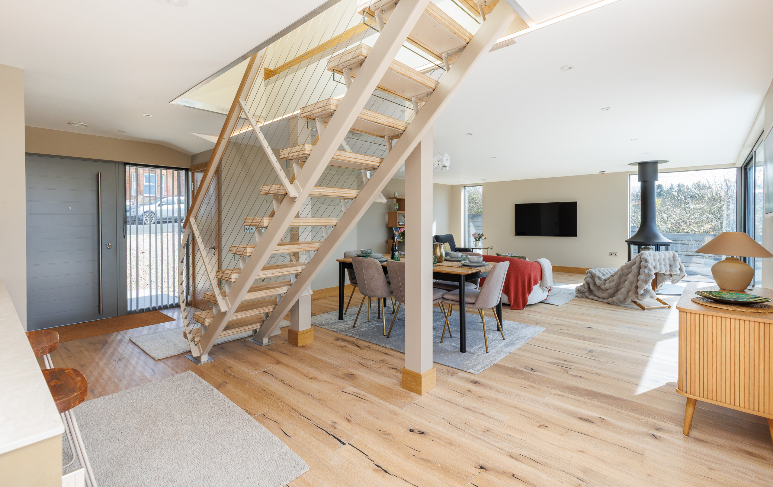 Nestled within easy walking distance of the coast, this architecturally striking property offers the perfect blend of countryside tranquillity and seaside charm. From sunset strolls along Gurnard Bay to exploring the vibrant sailing town of Cowes, everything you need for a memorable Isle of Wight escape is within easy reach.