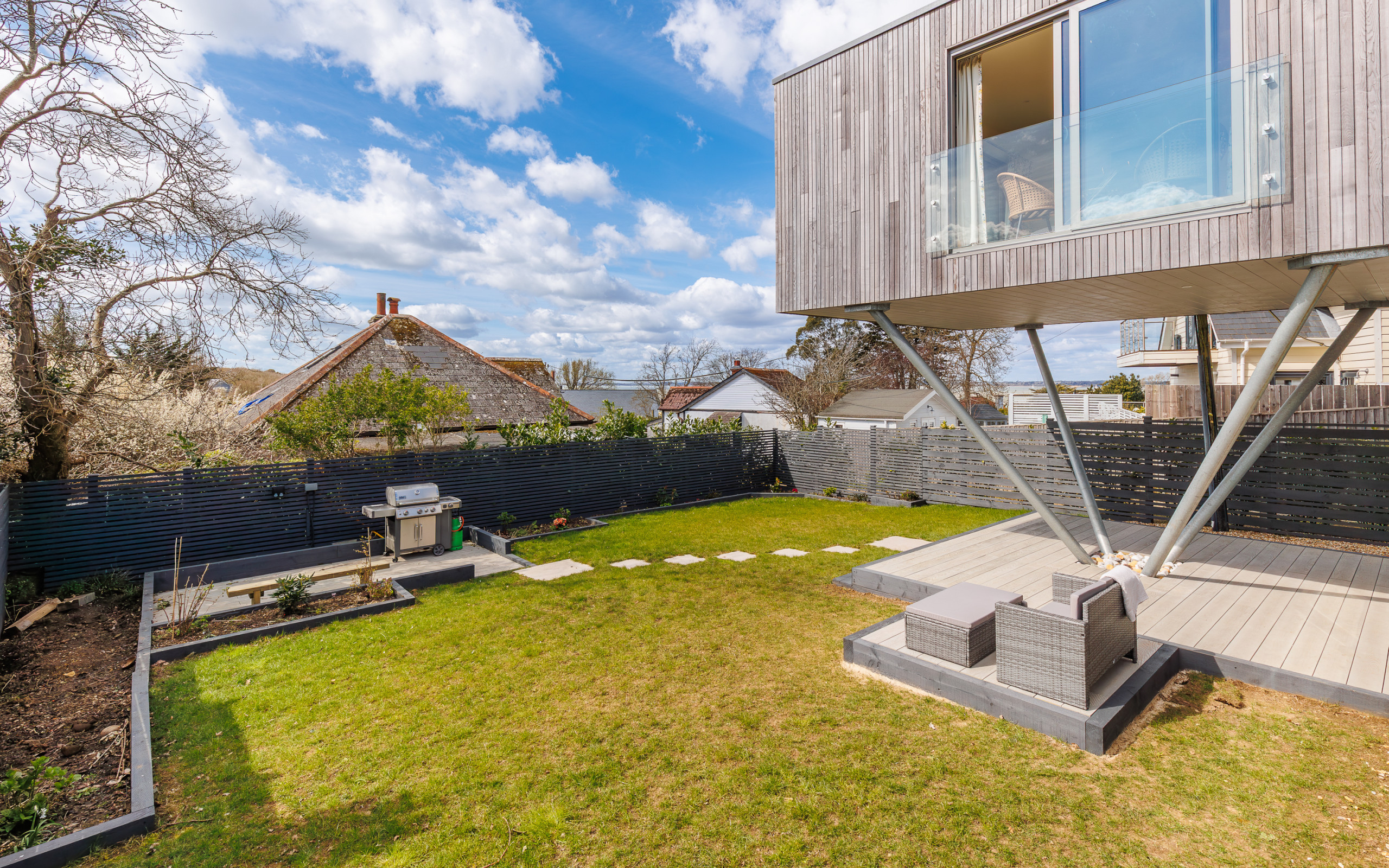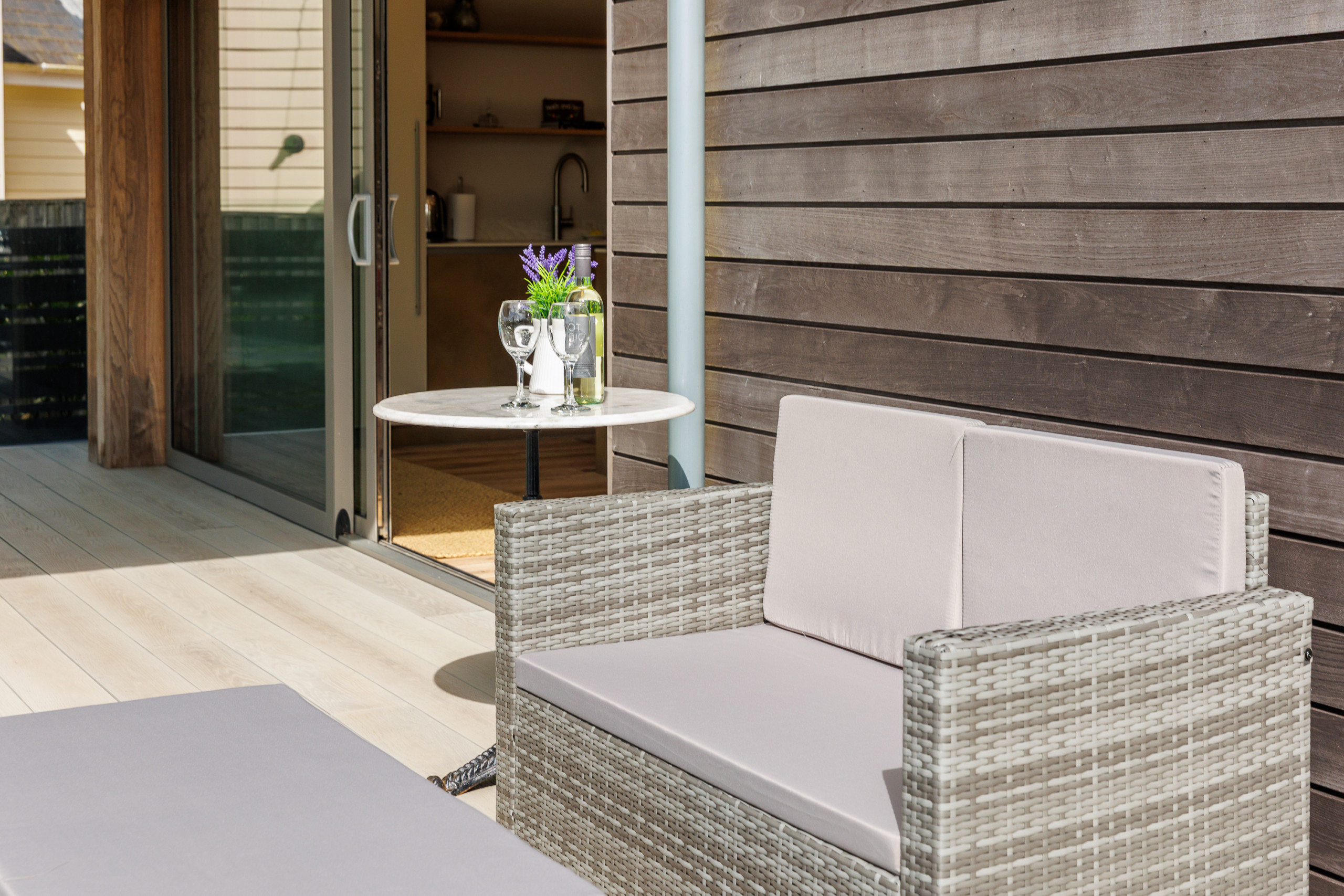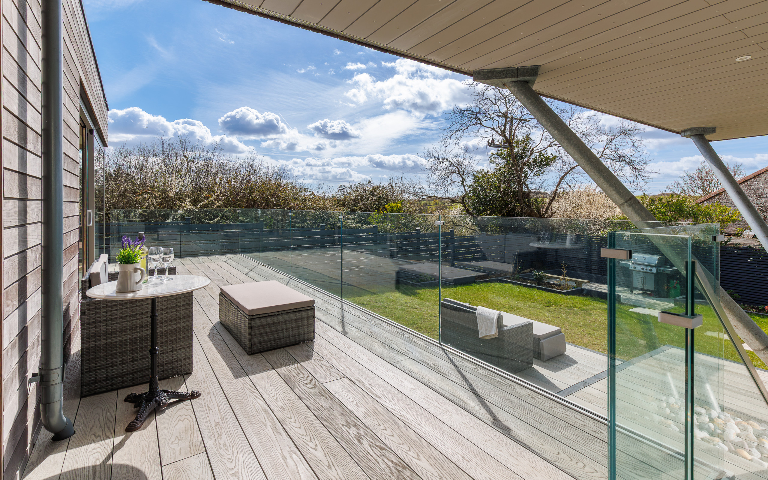 A sun-soaked decked area, creates a private suntrap sheltered from the breeze.