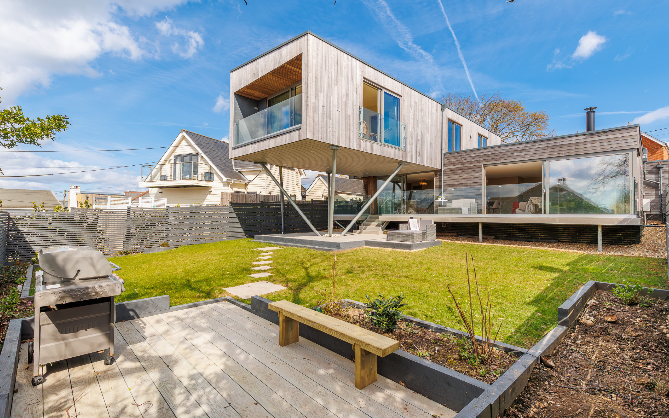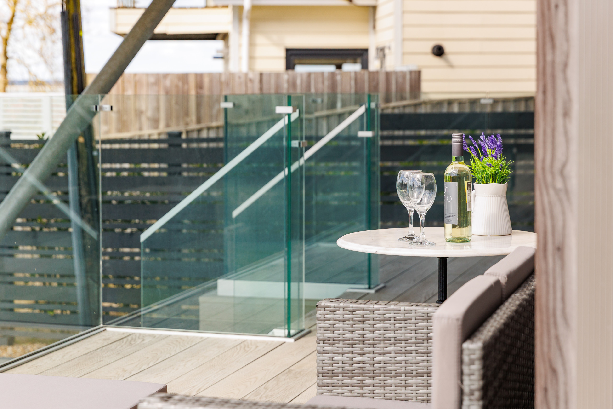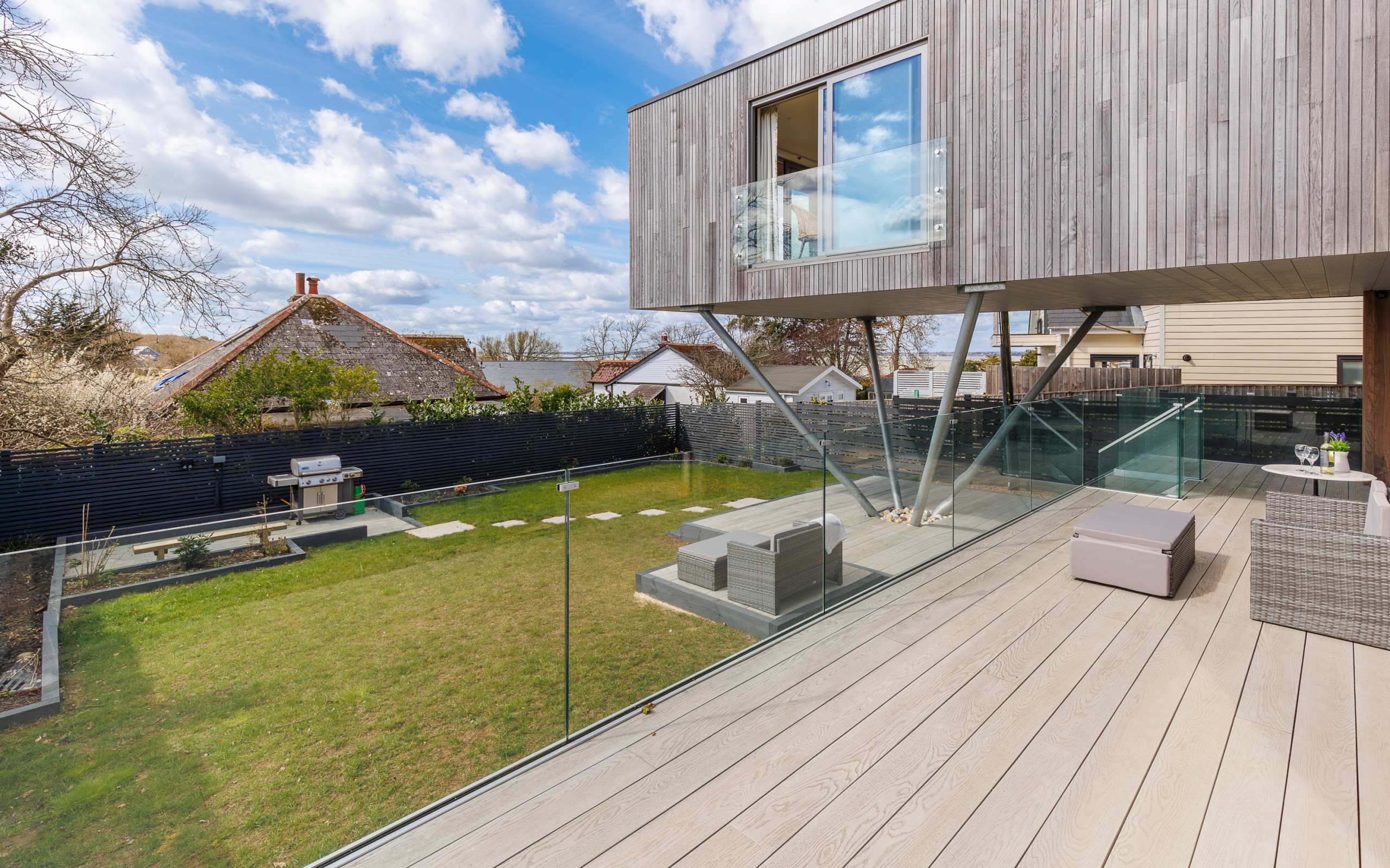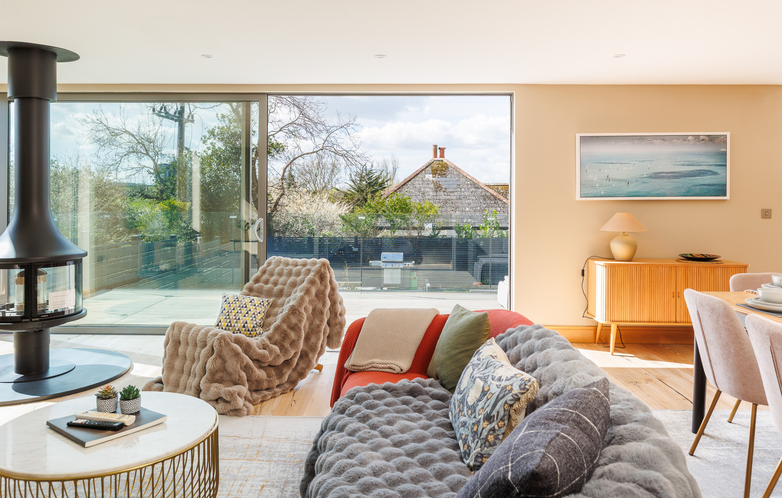 A sun-soaked decked area, creates a private suntrap sheltered from the breeze.