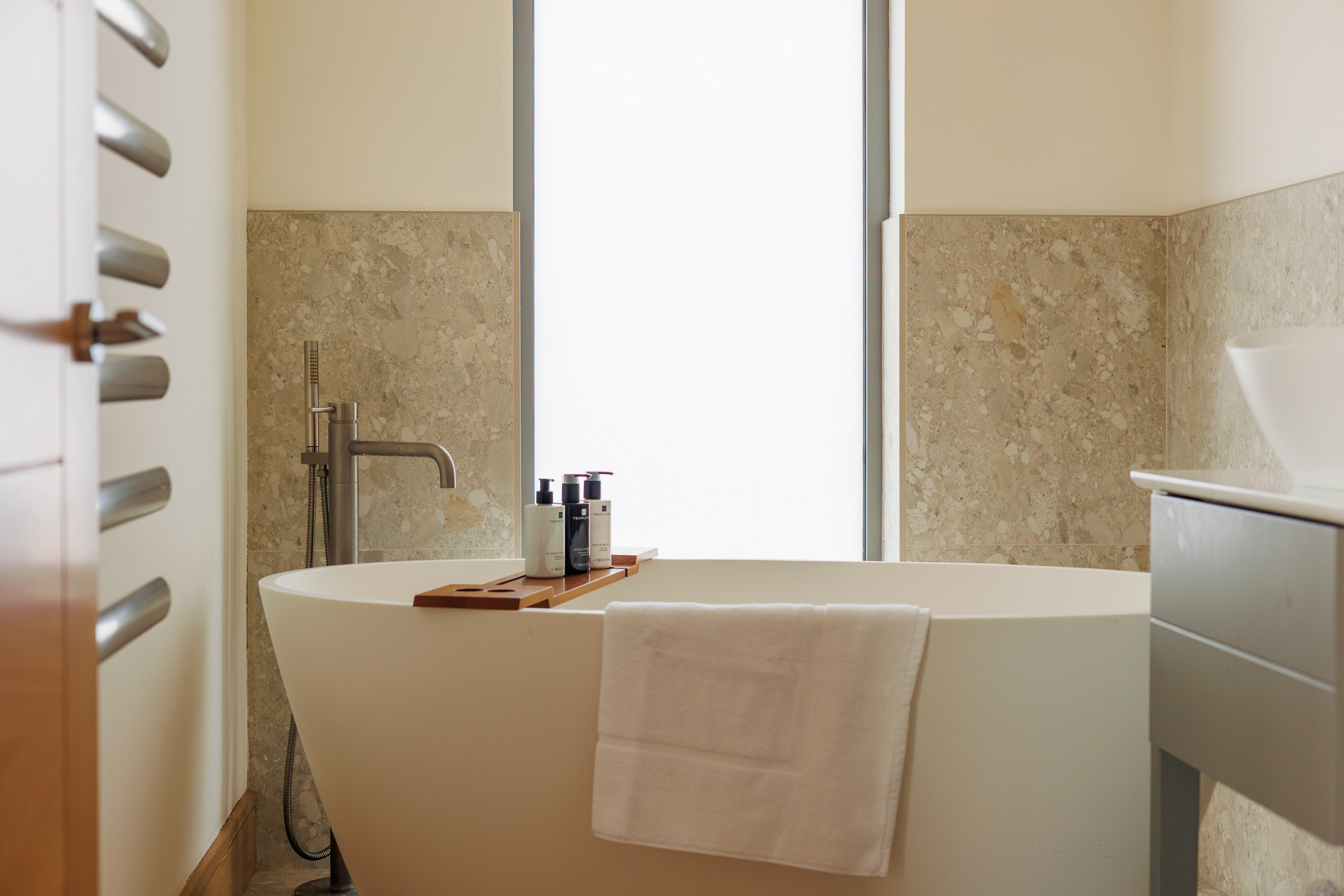 Rena’s Retreat also incorporates innovative eco-friendly technology, including a Hydraloop water recycling system and Vent-Axia heat recovery system, ensuring a comfortable and sustainable stay.