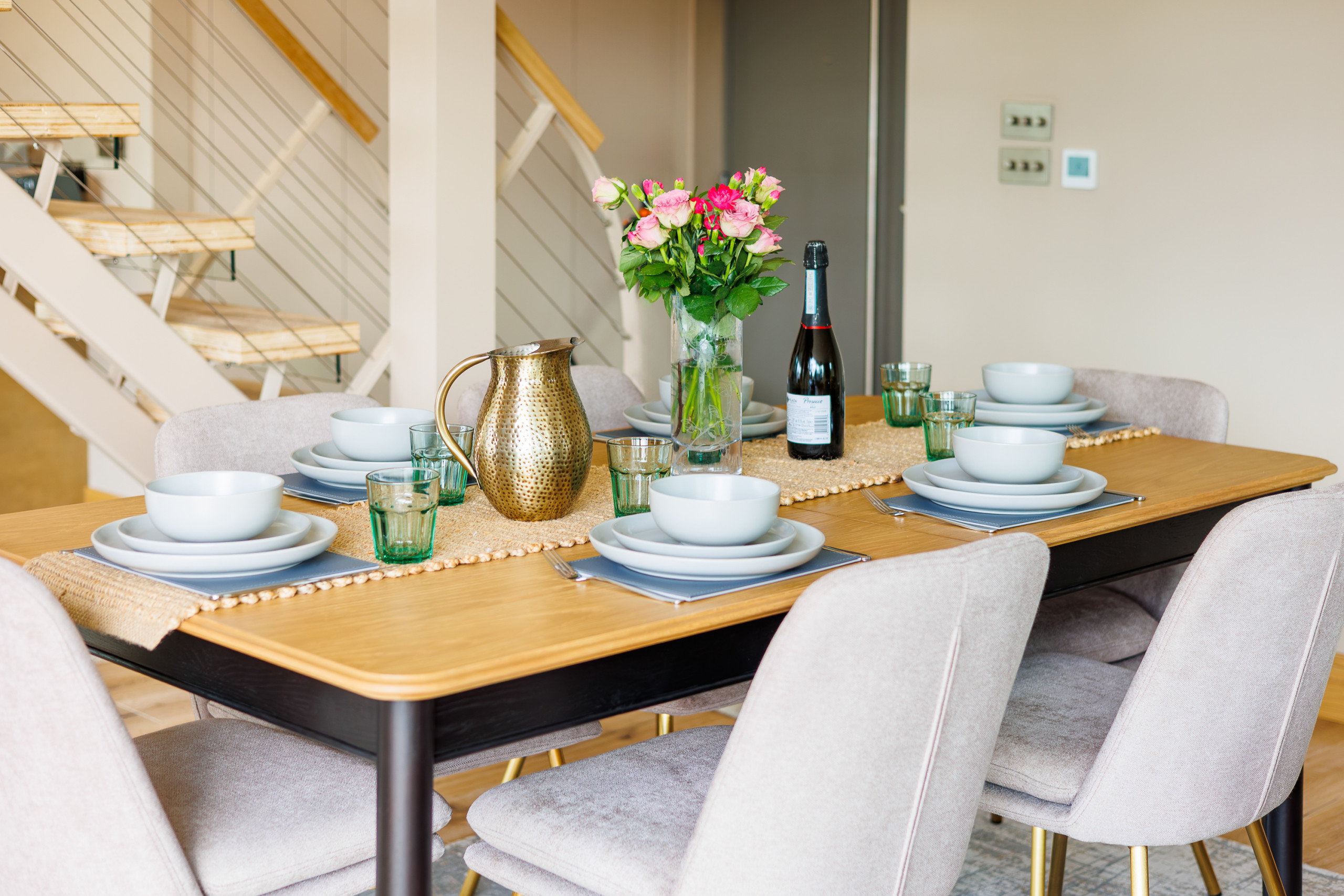 Dining table with seating for seven guests — perfect for long, sociable meals.