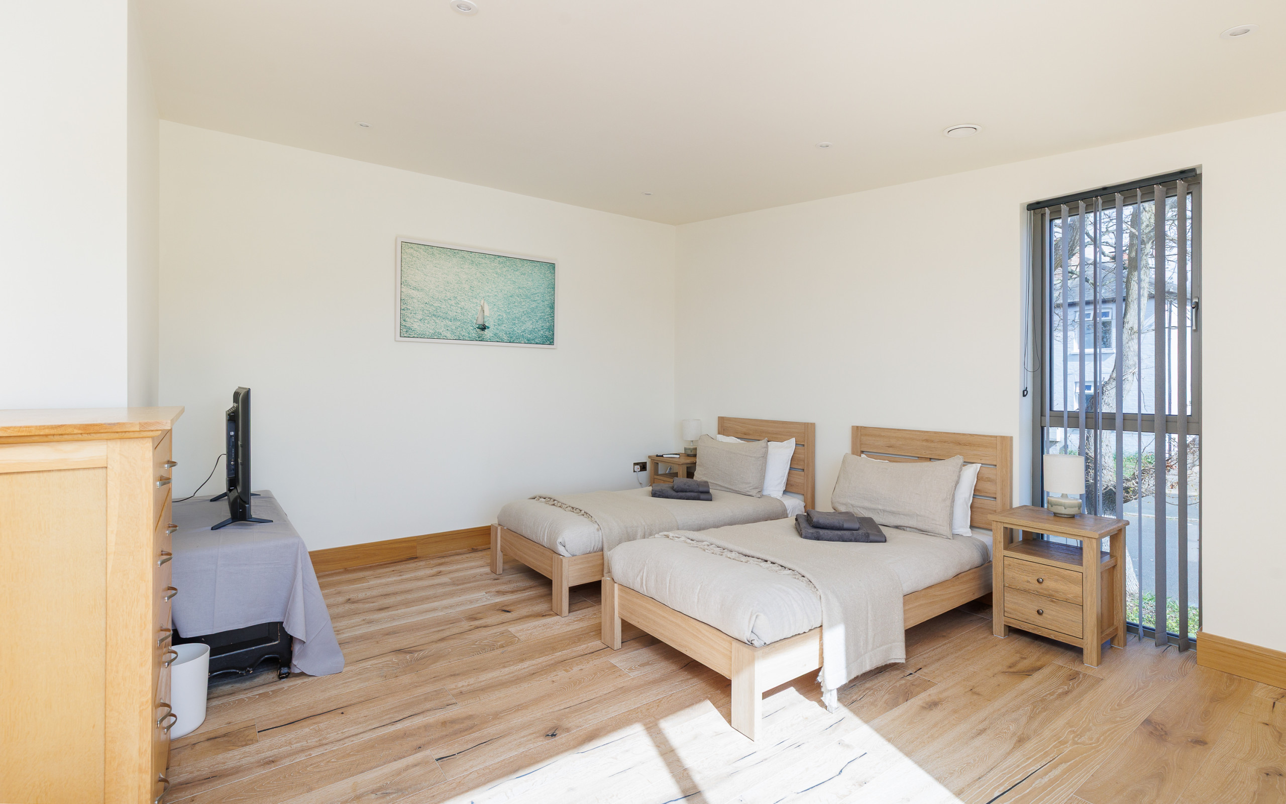 Two additional bedrooms and a stylish shower room offer flexible accommodation for families, couples, or small groups.